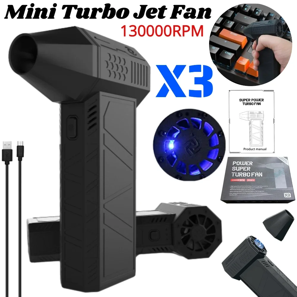 The Willgoo Mini Portable Jet Air Blower Rechargeable is a mini turbo jet fan featuring a powerful 150,000 RPM blower. With three adjustable speeds, a compact, portable design, and long-lasting 3000mAh batteries, it's perfect for cleaning electronics, inflating items, and more This mini fan features a sleek design and a well-structured build, delivering strong performance with a peak wind speed exceeding 52m/s.